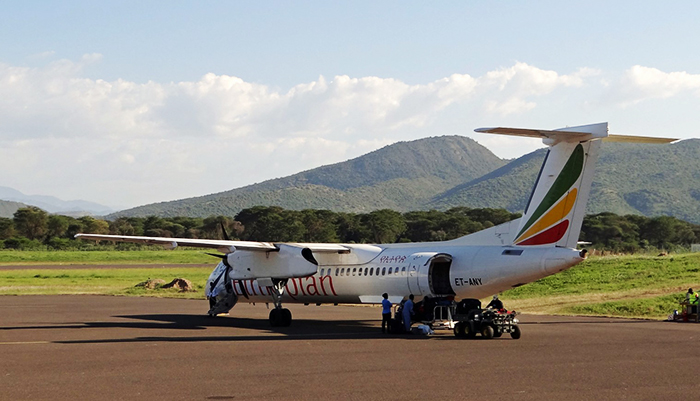 der Rückweg von Süd-Äthiopien nach Addis liegt in der Luft (Foto: Abflug von Arba Minch)