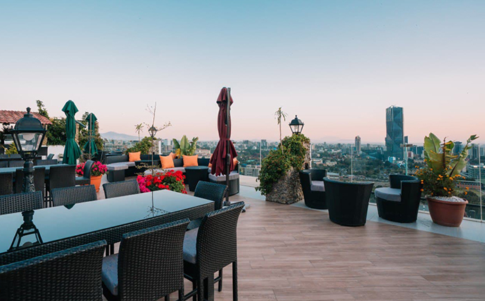Im 13. Stock befindet sich die Lounge mit einer Bar und Restaurant und verspricht eine tolle Aussicht: