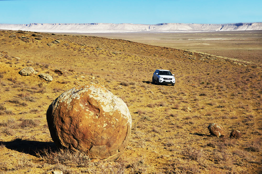 Das Tal der Bälle Das Tal der Kugeln, auch Torysh genannt, ist ein einzigartiges Naturphänomen und bietet einen Einblick in die riesigen Zeitskalen der geologischen Geschichte der Erde. Die Bildung dieser Konkretionen dauerte Millionen von Jahren und sie dienen als visuelle Erinnerung an die langsamen und allmählichen Prozesse, die unseren Planeten über immense Zeiträume geformt haben.