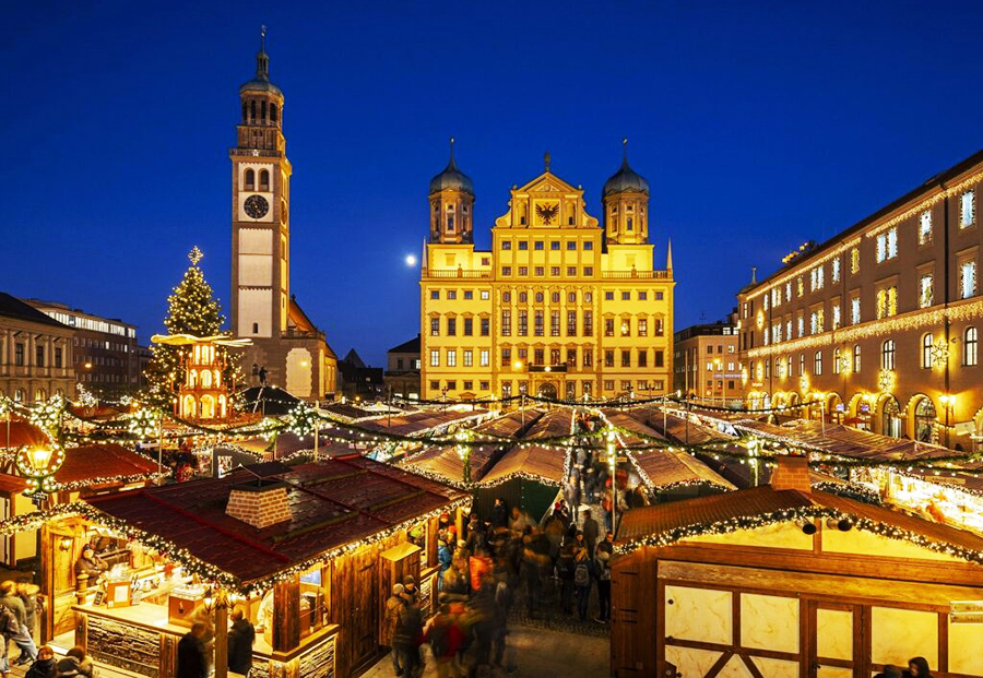 Auf dem Rathausplatz, dem Martin-Luther-Platz, in der Maximilianstraße und vor der Moritzkirche reihen sich die Buden eines der schönsten & ältesten Weihnachtsmärkte Deutschlands (seit dem 15. Jhdt.): der Augsburger Christkindlesmarkt