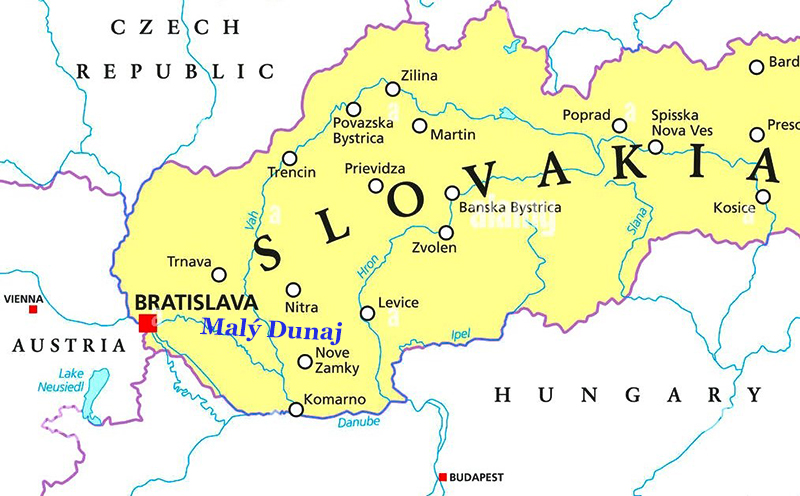 Die Malý Dunaj mit der Waag bilden eine Große Insel, die größte Fluss- bzw. Binnen-Insel Europas.